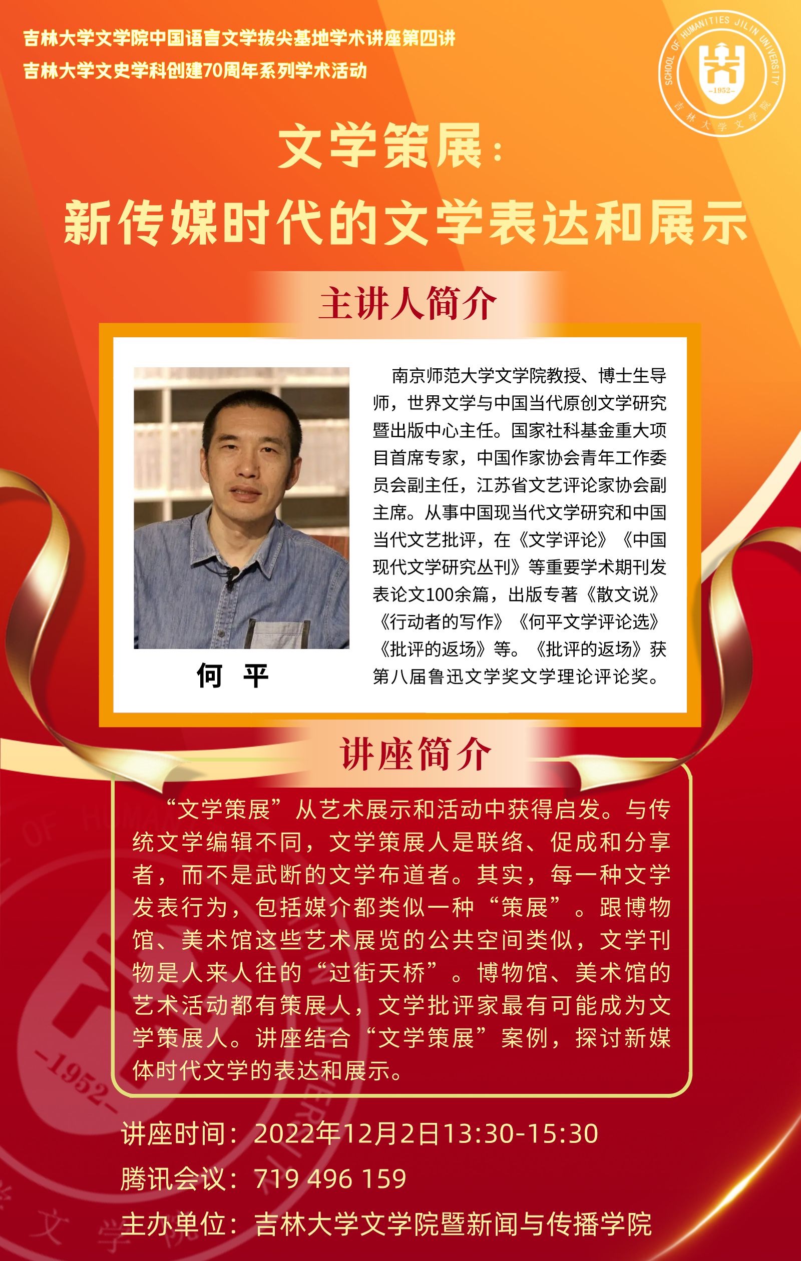 主讲人简介:何平,南京师范大学必赢(中国)biying·官方网页版教授、博士生导师,世界文学与中国当代原创文学研究暨出版中心主任。国家社科基金重大项目首席专家,中国作家协会青年工作委员会副主任,江苏省文艺评论家协会副主席。从事中国现当代文学研究和中国当代文艺批评,在《文学评论》《中国现代文学研究丛刊》等重要学术期刊发表论文100余篇,出版专著《散文说》《行动者的写作》《何平文学评论选》《批评的返场》等。《批评的返场》获第八届鲁迅文学奖文学理论评论奖。