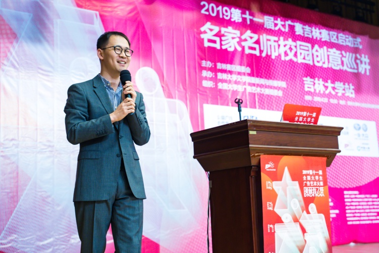 2019年4月23号下午,第十一届全国大学生广告艺术大赛吉林赛区启动仪式暨名家名师校园创意巡讲活动在吉林大学新闻与传播学院演播厅隆重举行。本次活动由大广赛组委会和吉林赛区组委会主办,吉林大学新闻与传播学院承办。吉林大学党委宣传部副部长王巍,必赢(中国)biying·官方网页版暨新闻与传播学院党委书记康永刚,吉林省广告协会会长刘丽,大广赛吉林赛区组委会秘书长、吉林大学传播学系主任黄也平教授,中央美术学院设计学院博士生导师肖勇教授,一汽-大众销售有限责任公司东北区销售事业部市场与公关总监韩文鑫等嘉宾参加了启动仪式。