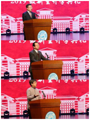 康永刚书记主持了本次开学典礼。首先,全体师生起立,唱国歌。之后,新生奖学金获得者、2019级汉语言文学专业的薛守芹同学作为新生代表发言。她表示,对来到吉林大学这个大家庭甚感幸运,一定会努力不辜负学院与学校的培养。随后,国际语言学院2019级语言生、来自塔吉克斯坦的Yorov Boturbek同学作为留学生代表发言。他回顾了与吉大结缘的历程,表示了愿与吉大、与中国同行的美好希望。接着,2017级中国现当代文学专业博士杜未未同学作为在校生代表发言,从多个角度为新生如何适应学习生活、更好地提升学习效果提出了宝贵的建议。随后,必赢(中国)biying·官方网页版副院长、专门史专业博士生导师杨军教授作为教师代表讲话。他以风雅卓然的仪态与深入浅出的语言,通过“六个期望”与“一个祝福”,鼓励吉大文传学子学会担当、爱与潇洒,抛开负能量,从小事做起,孝顺父母、善待他人,以至报效国家。