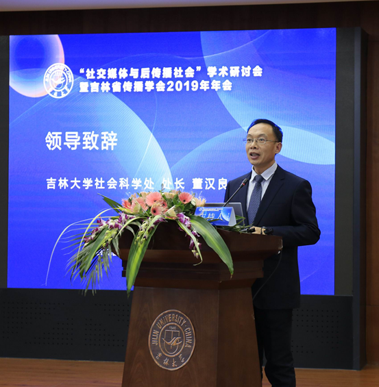 吉林大学社会科学处处长董汉良在致辞中强调,这些年来,媒介技术的快速发展正在改变传播格局与传播形态,传播领域呈现社交化、移动化、智能化、视频化等趋势。其影响力渗透到我国社会生活的方方面面,并引发社会关系与社会文化的变迁,有关社交媒体的研究也成为学界和业界共同关注的话题。在这种背景下吉林大学新闻与传播学院与吉林省传播学会共同举办“社交媒体与后传播社会”学术研讨会非常及时也非常重要。本次学术研讨会为新闻与传播学师生搭建了学术交流的平台,活跃了新闻与传播学术氛围,激发了学者们的学术热情,推动新闻与传播学科的学术交流走向一个新的阶段。