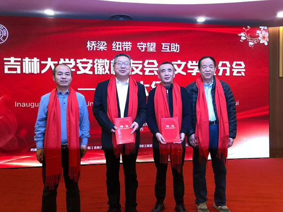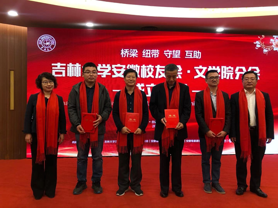原科技日报社总编辑、北京校友会文学分会会长王秀义、吉林大学安徽校友会理事长薛颀为校友会秘书长、副秘书长颁发证书