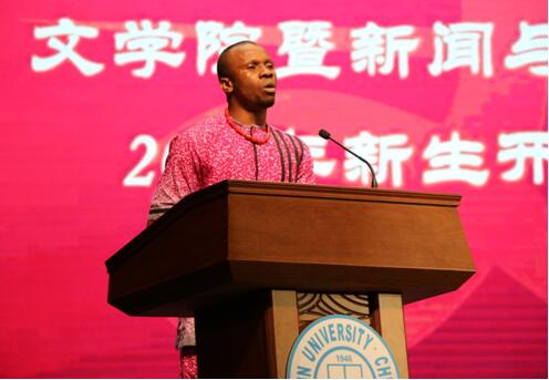 来自尼日利亚的2017级汉语国际教育研究生韩天扬同学代表留学生发言,真诚、幽默的言语中饱含着对中国、对吉林大学的热爱。