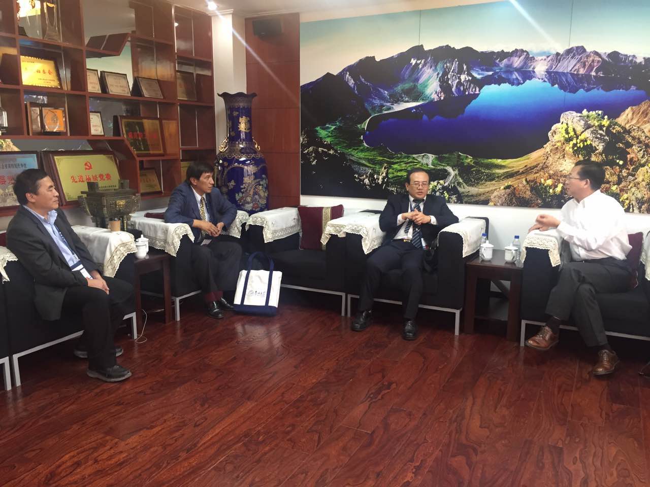 9月16日,铭传大学副校长王金龙、世新大学校长吴永乾、淡江大学副校长戴万钦等来宾访问我院,院长徐正考、新闻与传播学院副院长鞠惠冰会见了来访的三所台湾高校校领导,于东荣大厦十楼会客厅进行了座谈。