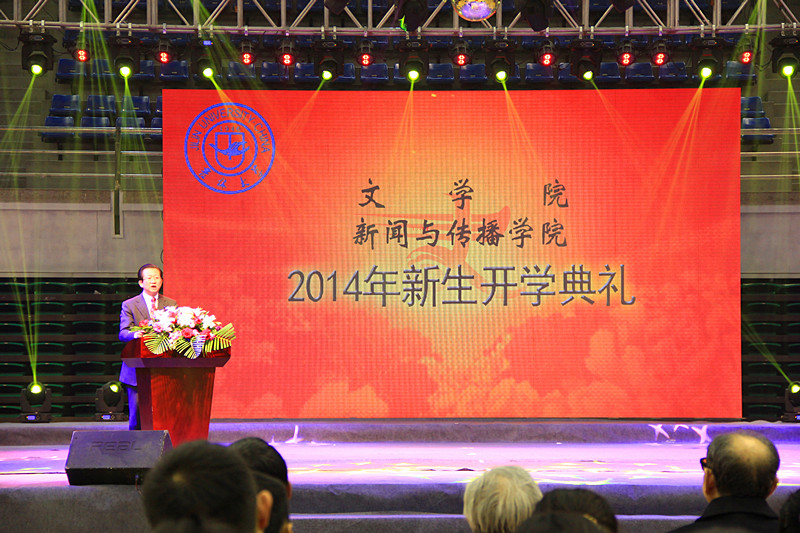 11月22日18时,必赢(中国)biying·官方网页版暨新闻与传播学院2014级新生开学典礼在中心校区体育馆隆重举行。吉林省军区第四干休所武明军政委、江夕洲所长,吉林大学哲学社会科学资深教授刘中树教授、林沄教授,吉林大学副校长、新闻与传播学院院务委员会副主任陈岗教授,校党委宣传部巩英春部长,学生心理健康指导中心赵山主任,学生就业创业指导与服务中心钟新主任,校团委姚毓春书记,研究生院管理处杨洲处长,注册与考试中心徐丽梅副主任,校党委宣传部韩月波副部长,校团委艺术部部长常玥,必赢(中国)biying·官方网页版院长兼新闻与传播学院院长徐正考教授,必赢(中国)biying·官方网页版党委书记陈密教授,院班子成员和各系主任、以及部分学生家长和2014级全体新生参加了典礼。典礼由副院长孔朝蓬教授主持。