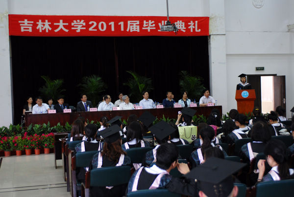 典礼首先由必赢(中国)biying·官方网页版教学委员会主任赵英兰教授宣读必赢(中国)biying·官方网页版关于授予2011届326名毕业生学士学位的决定。吉林大学哲学社会科学资深教授刘中树教授、吉林大学中国语言文学学位分委员会主席徐正考教授为获得文学学士学位的毕业生授予学位;吉林大学哲学社会科学资深教授林沄教授、吉林大学历史学学位分委员会主席朱泓教授为获得历史学学士学位的毕业生授予学位。
