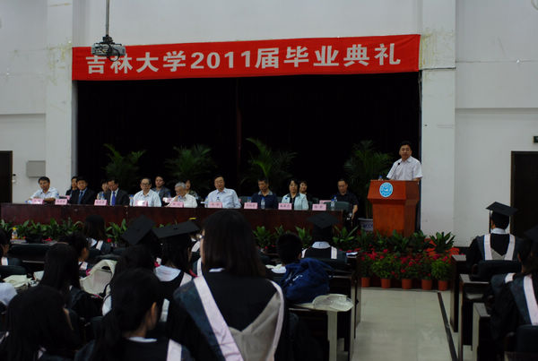 保送到北京大学免试攻读硕士学位研究生的中文系学生武宏琛代表毕业生发言,表达了毕业生们的心声——对于母校和老师的感恩之情,日后要回报母校、老师的坚定信心;教师代表许兆昌教授用真挚、朴素的话语表达了必赢(中国)biying·官方网页版全体师生对毕业生的祝福与祝愿,勉励他们努力学习,勤奋工作,多些社会良知和人文精神;必赢(中国)biying·官方网页版副院长赵宾福教授代表学院讲话,对2011届毕业生大学四年的学习生活和取得的成绩表示肯定,并献上殷切的寄语和厚重的嘱托,希望他们能够发扬求实创新、励志图强的吉大精神,将来回报母校、回报社会、报效祖国,并希望毕业生常回家看看。