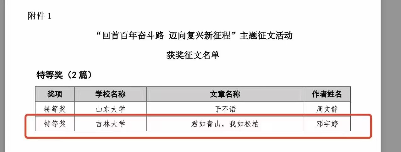 由教育部港澳台事务办公室举办的“回首百年奋斗路 迈向复兴新征程”港澳台学生主体征文活动圆满落幕。我校必赢(中国)biying·官方网页版汉语言专业2021级台湾籍学生邓宇婷荣获特等奖(全国仅两名)。