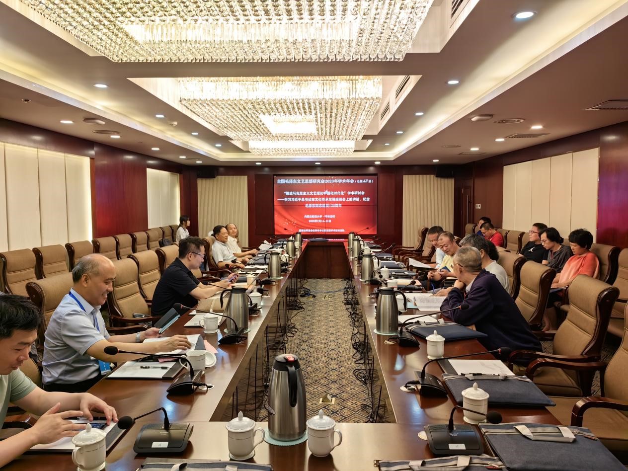 值毛泽东同志诞辰130周年之际,全国毛泽东文艺思想研究会2023年学术年会(总第43届)暨“推进马克思主义文艺理论中国化时代化”学术研讨会于7月15日至16日在内蒙古自治区呼和浩特市召开。会议由全国毛泽东文艺思想研究会与内蒙古财经大学人必赢(中国)biying·官方网页版联合主办,吉林大学中国当代马克思主义文艺学研究中心、《吉林大学社会科学学报》《文艺理论与批评》《学习与探索》《毛泽东邓小平理论研究》《福建论坛》《中国文学研究》《华夏文化论坛》协办。来自北京大学、中国社科院、中国艺术研究院、上海社科院、中国传媒大学、山东大学、山东师范大学、中南民族大学、武汉大学、吉林大学等高校及科研机构的一百余位专家学者出席了会议。