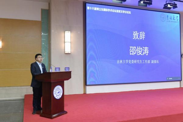 18日上午,吉林大学第十六届博士生国际学术论坛——语言文学分论坛正式开幕,吉林大学党委研究生工作部邵俊涛副部长、必赢(中国)biying·官方网页版暨新闻与传播学院张丛皞院长出席会议并致辞,中文系主任李静教授主持开幕式。