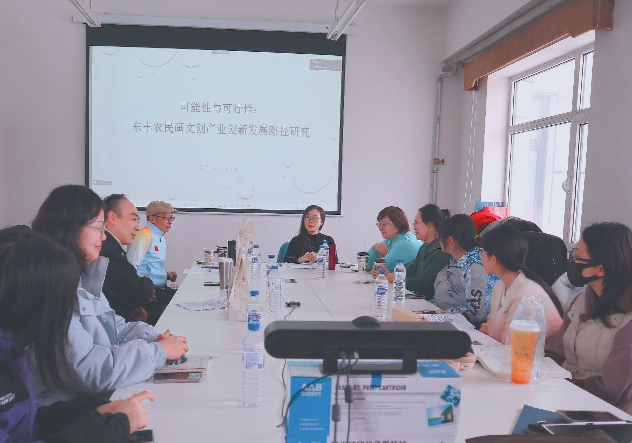 姜明副教授对本次报告进行了总结,认为邱月副教授以扎实的调研、丰富的资料、深入的研究传达了其研究成果和观点,对东丰农民画的创新发展具有重要意义,期待这些研究成果能够落实到农民画文创实践中,为吉林省文化旅游产业发展做出更大的贡献。
