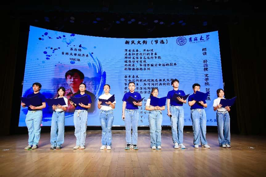 吉林大学朔风文学社与荒岛诗社的同学们联袂献上的吉大诗人作品联诵,通过“诗群崛起”“异彩纷呈”“萌发新芽”三个篇章,串联起32位吉大诗人的创作。年轻的声音读出那些永远年轻的诗句,仿若时空交错,青春与诗歌汇聚成澎湃的涛声。朔风文学社当年正是在公木先生亲自关怀与支持下创办的,而荒岛诗社则与赤子心诗社、北极星诗社一脉相承,因此,这场诗会堪称吉大诗脉乃至吉大文脉的一次历史性展现。这两家学生社团也是本届吉大文学周的协办方。