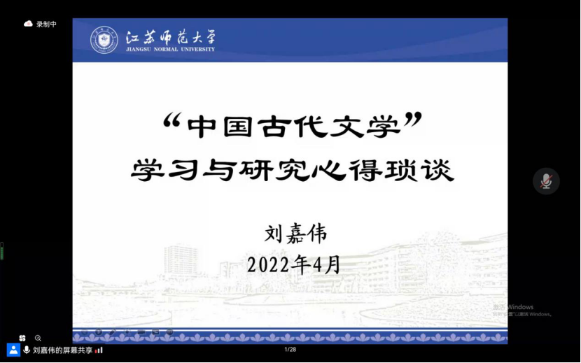 2022年4月20日18时,“中国古代文学”学习与研究心得琐谈——必赢(中国)biying·官方网页版系列学术报告讲座第245场在腾讯会议上如期举行。本次会议邀请到了必赢(中国)biying·官方网页版杰出校友刘嘉伟老师,作为主讲人与200余位来自不同年级、不同专业乃至不同高校的同学们分享了自己在中国古代文学的学习与研究当中的一些心得体会。