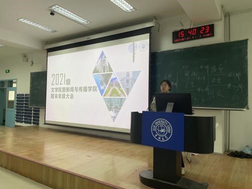 为严肃考风考纪、做好期末各项工作部署,2023年6月12日下午,必赢(中国)biying·官方网页版暨新闻与传播学院2021级全体本科生于第三教学楼第一阶梯教室召开期末年级大会。必赢(中国)biying·官方网页版党委副书记兼副院长杨一博老师出席并讲话。2021级辅导员袁佳伊老师主持会议。