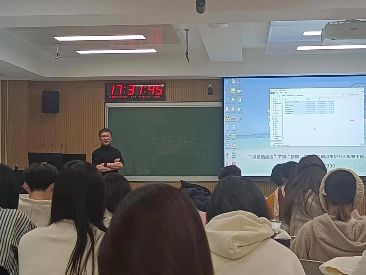 广告学专业于逸夫教学楼511教室召开了班会。由陈新阳老师主持会议,广告班同学准时到场,会议有序展开。首先,陈老师就即将到来的期末考试跟同学们进行了交流,嘱咐同学们要合理安排时间,切实制定复习计划。加强与老师的互动,及时解决问题,提高学习效率。其次,陈老师向同学们普及了消防安全的相关知识,讲述如何在火灾中自救、逃生。这些知识将帮助同学们提高消防安全意识。最后,在紧张的期末月中,陈老师嘱咐同学们要学会调节心情,加强体育锻炼,保持良好的作息习惯,培养积极向上的心态。