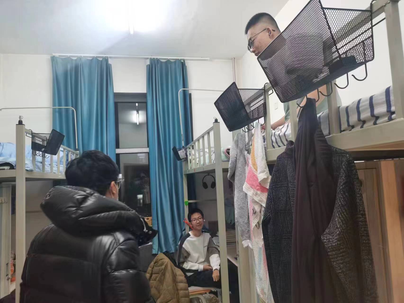 在走访寝室过程中,各年级辅导员老师逐一核实了每位同学的返校情况,针对因车票购买、实习实践等原因延迟返校同学进行逐一核实,并联系学生家长确认信息。寝室走访的过程中,辅导员老师也提醒同学们返校后及时开窗通风,酒精消毒,保持干净卫生的环境,养成良好的生活习惯,共同营造一个舒适、整洁的学习和生活环境。安全无小事,各位老师对寝室内的消防设施进行了仔细检查,并着重提醒同学们注意用电安全,不私自乱接电线,禁止在寝室内使用违规电器,以防火灾隐患。另外,几位老师和学生深入交流了学生丰富精彩的假期生活,并鼓励大家尽快调整作息时间,以饱满的精神状态迎接新学期的学习任务。
