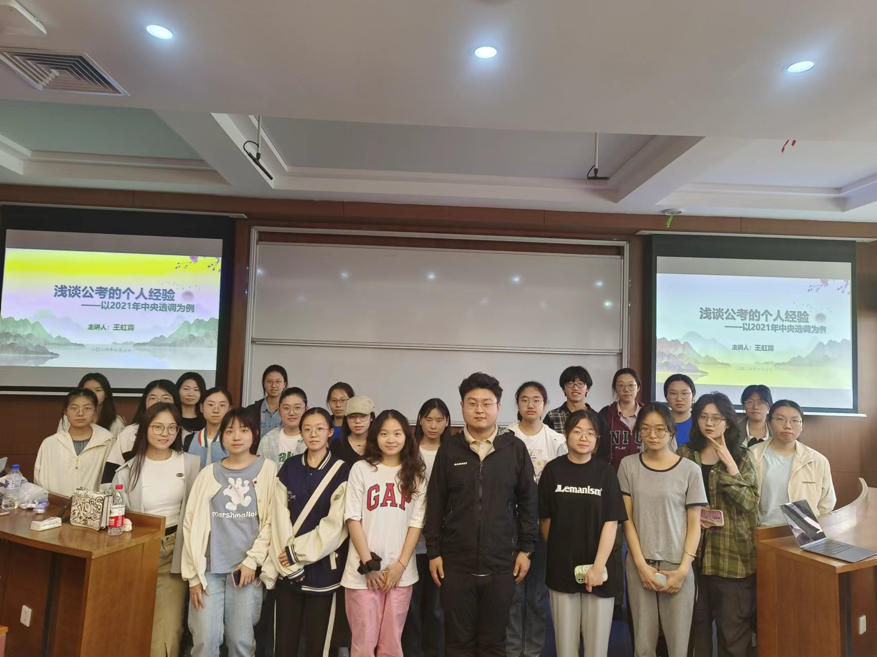为进一步拓宽文传学子的职业发展视野,提升核心竞争力,以实现更高质量更充分的就业,我院于2024年6月2日下午两点三十分在逸夫楼第六阶梯教室成功举办了2025公考经验分享会,此次会议邀请了优秀校友王虹霖作为主讲嘉宾,为我院学生带来了关于考公选调考试的宝贵经验和心得体会。辅导员李芊满、杨佳欣参加会议。