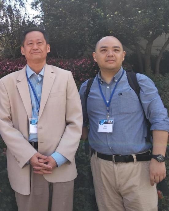 2018年3月出席美国比较文学学会年会时与前辈学者、加州大学鲁晓鹏教授合影