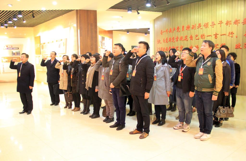 参观主题展览后,全体党员在必赢(中国)biying·官方网页版党委书记康永刚同志的带领下重温了入党誓词,庄严的宣誓声在展览大厅回响,提醒所有党员同志要不忘初心,时刻保持警惕,铭记作为一名共产党员所要承担的责任。