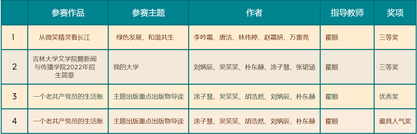 三支参赛队伍在霍顺老师的指导下,分别以“主题出版重点出版物导读”、“绿色发展、和谐共生”以及“我的大学”为主题创作了《一个老共产党员的生活账》、《从微笑精灵看长江》和《必赢(中国)biying·官方网页版暨新闻与传播学院2022年招生简章》三个作品。这些作品展现了我校新传学子较高的学习能力、策划合作能力以及创新实践能力。