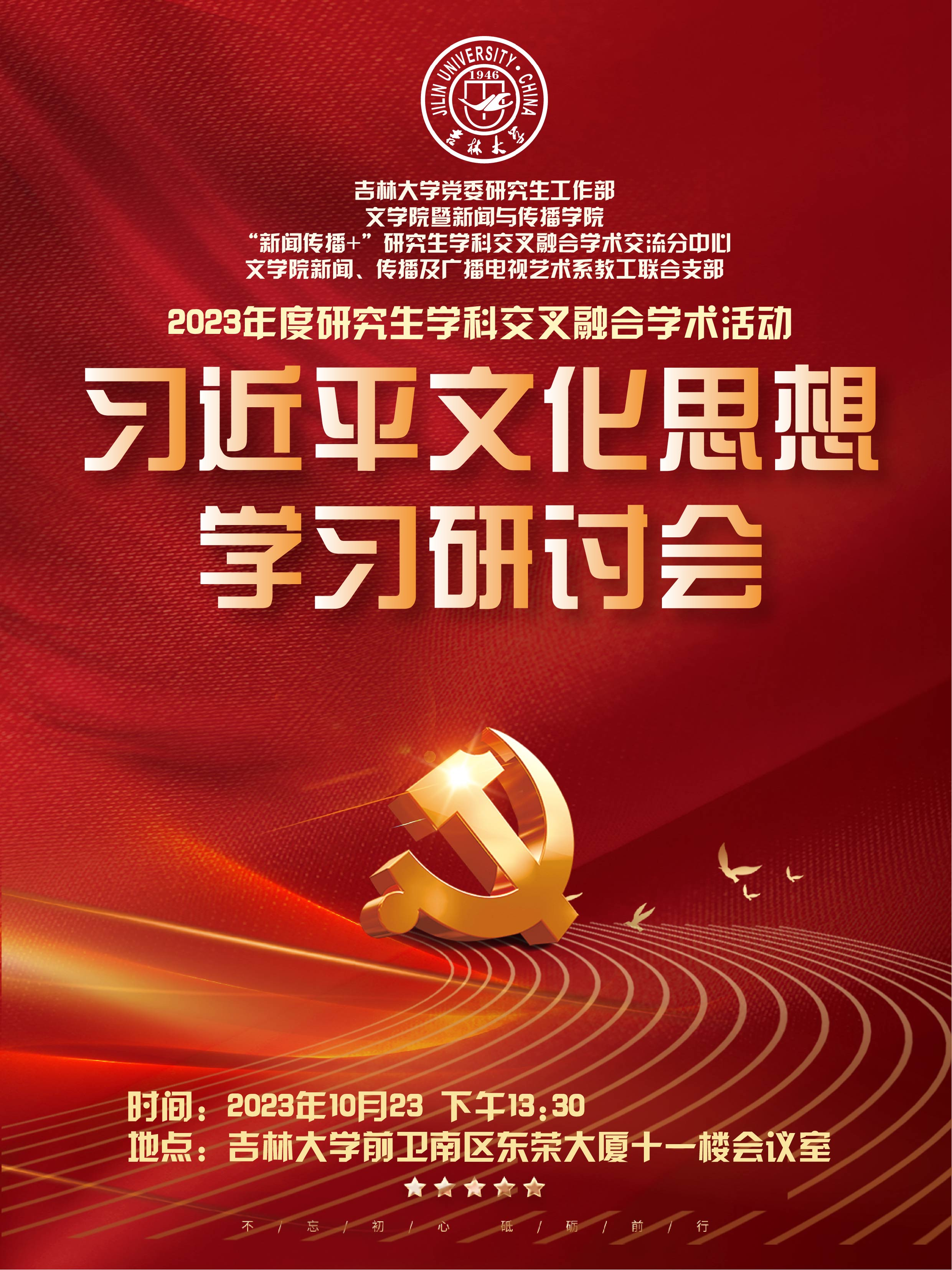 为深入学习贯彻习近平文化思想,进一步加强我校研究生思想政治教育,提高宣传思想文化意识,响应时代号召,让青年群体更加深刻领悟习近平文化思想的重要性和指导性,切实增强做好新时代新征程宣传思想文化工作的责任感使命感,贡献青春力量。现决定开展习近平文化思想学习研讨会,相关事宜通知如下: